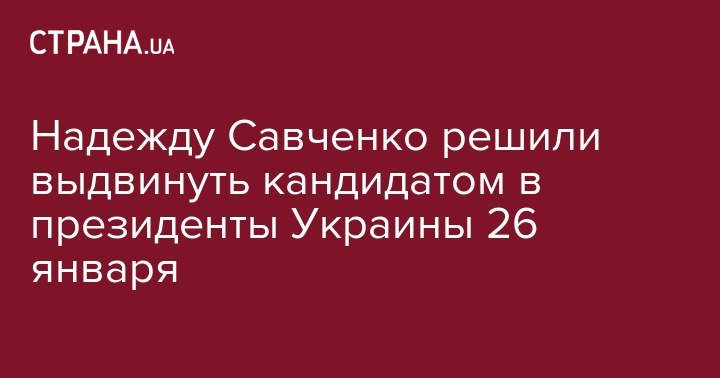 Внефракционного народного депутата Украины Надежду Савченко намерены выдвинуть кандидатом в президенты Украины на съезде ее партии, который запланирован на 26 января. Об этом сообщает "Интерфакс-Украина" со ссылкой на сестру нардепа Веру Савченко.