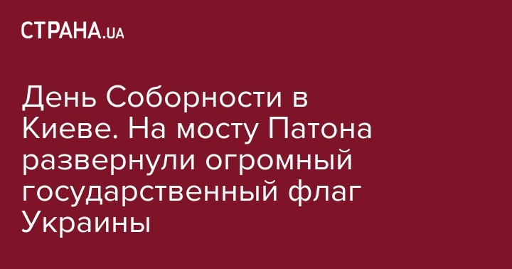 День Соборности в Киеве. На мосту Патона развернули огромный государственный флаг Украины