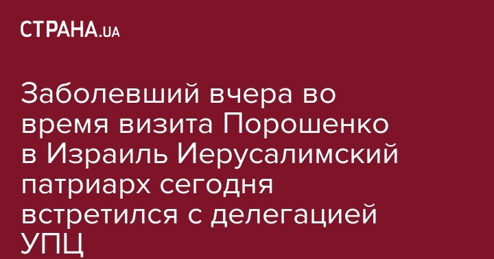 Эти слова патриарха можно понимать, как отказ поддерживать создание ПЦУ в Украине. По всей видимости, это и стало главной причиной, по которой в Иерусалиме внезапно отменили вчерашнюю встречу с президентом Петром Порошенко, назначенную на 15:00. На встрече должен был подниматься вопрос о признании "новой церкви" со стороны иерусалимского патриархата, который контролирует основные христианские объекты Святой земли.