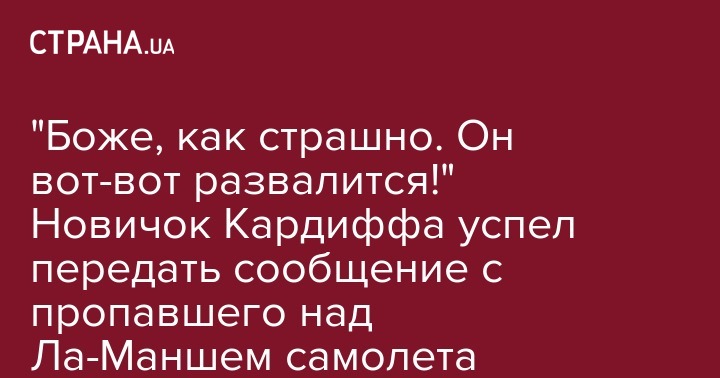 "Боже, как страшно. Он вот-вот развалится!" Новичок Кардиффа успел передать сообщение с пропавшего над Ла-Маншем самолета