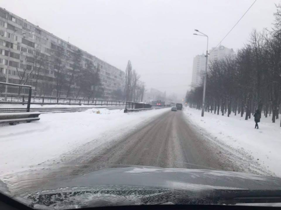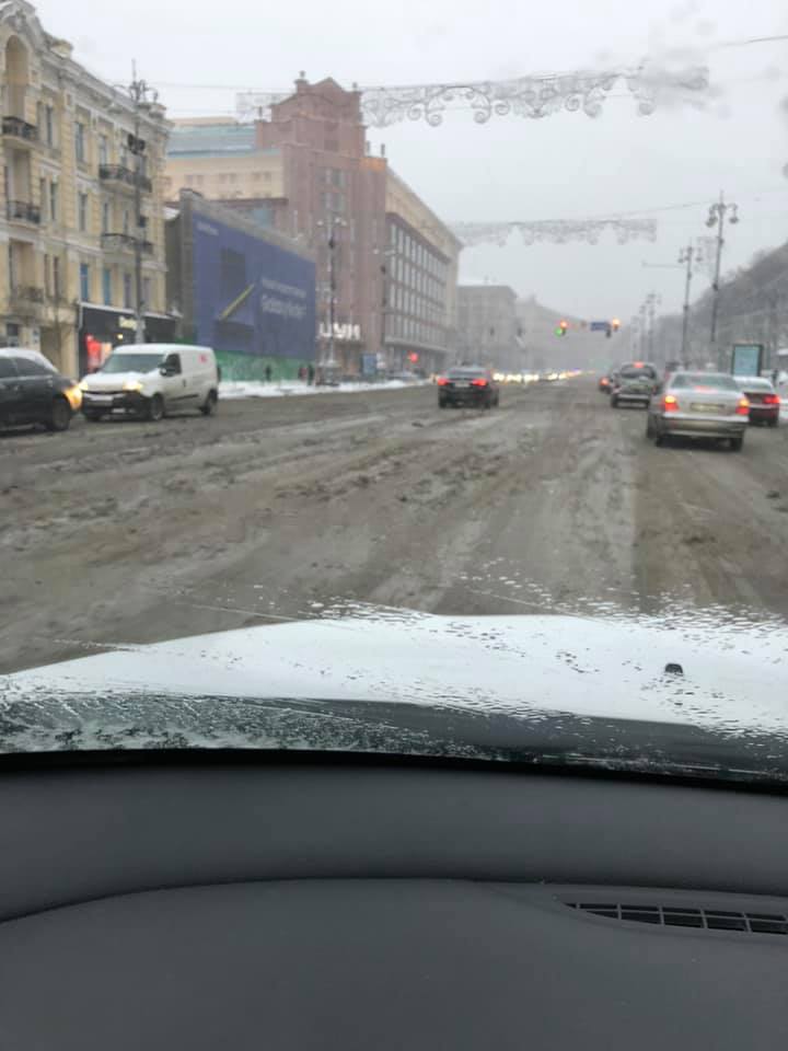 В Киеве из-за непогоды проблемы на дорогах. Депутаты жалуются на заснеженный Крещатик и заметенную Борщаговку