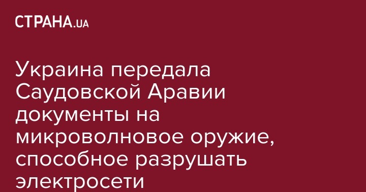 Украина передала Саудовской Аравии документы на микроволновое оружие, способное разрушать электросети