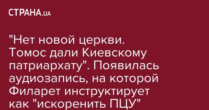 "Нет новой церкви. Томос дали Киевскому патриархату". Появилась аудиозапись, на которой Филарет инструктирует как "искоренить ПЦУ"