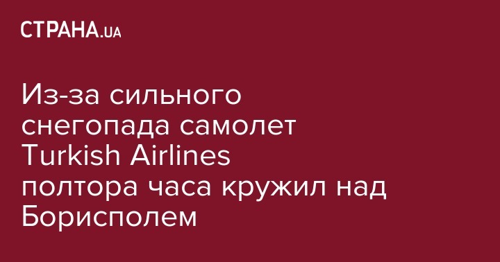 Самолет "Стамбул - Киев" авиакомпании Turkish Airlines утром 23 января полтора часа кружил над "Борисполем", так как не мог приземлиться из-за сильного снегопада. Об этом сообщает Telegram-канал dtp.kiev.info.