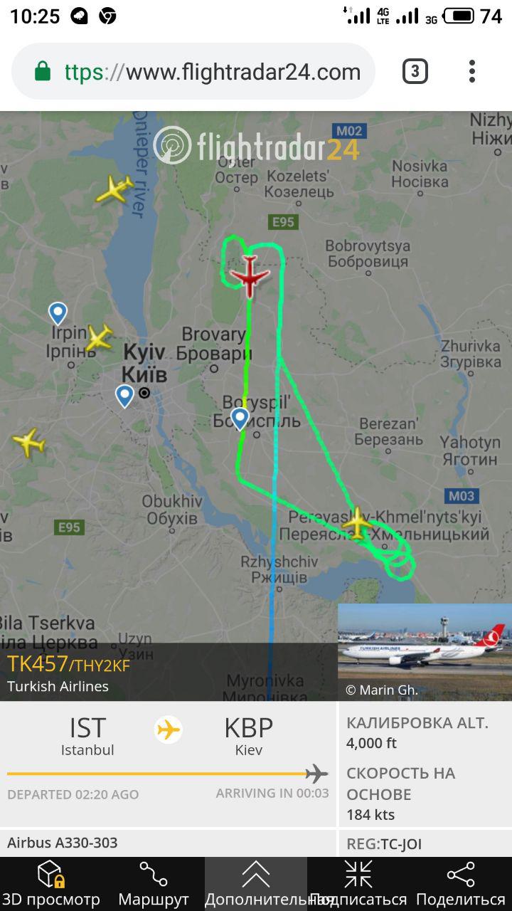 Аэробус А330 Turkish Airlines приземлился в аэропорту "Борисполь" только в 10:35, а время опоздания составило около полутора часов.