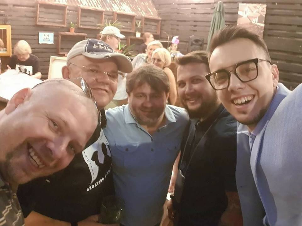 Андрей Дзиндзя (в центре) на фото в окружении "порохоботов" Павла Дальнобоя и Мирослава Олешко Фото: facebook.com/dzindzia
