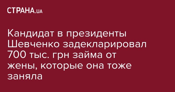 Кандидат в президенты Шевченко задекларировал 700 тыс. грн займа от жены, которые она тоже заняла