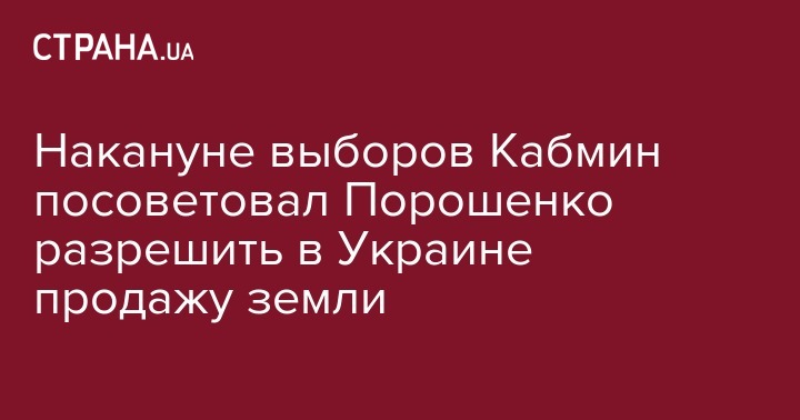 Накануне выборов Кабмин посоветовал Порошенко разрешить в Украине продажу земли