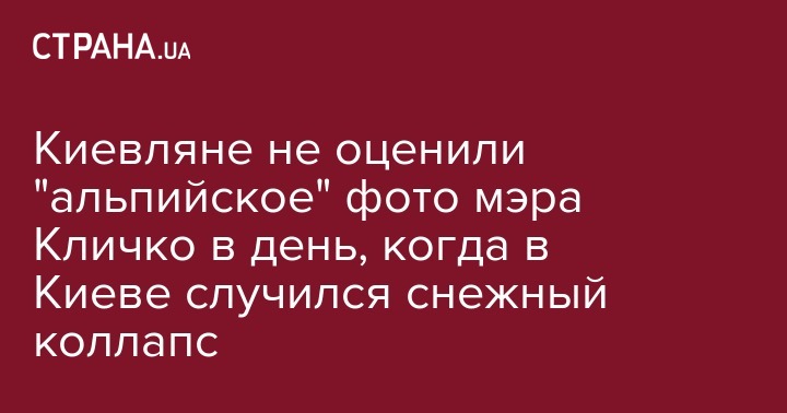 Киевляне не оценили "альпийское" фото мэра Кличко в день, когда в Киеве случился снежный коллапс