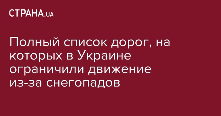 Полный список дорог, на которых в Украине ограничили движение из-за снегопадов