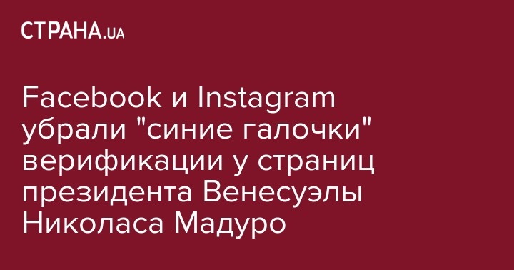 После начала попытки захвата власти в Венесуэле профили президента Венесуэлы Николаса Мадуро в Facebook и Instagram лишились знаменитой "синей галочки" - специального значка рядом с именем владельца аккаунта, который подтверждает подлинность страниц публичных личностей и знаменитостей.