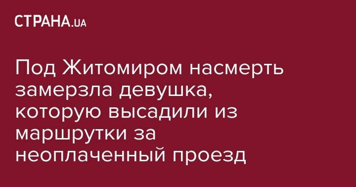 В Житомирской области насмерть замерзла 21-летняя девушка, которую ранним утром за два километра от ближайшего населенного пункта высадили из маршрутки, так как она не смогла заплатить за проезд. Об этом сообщает Житомир.info.