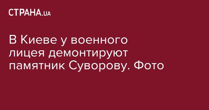 В четверг, 24 января, в Киеве начался демонтаж памятника российскому полководцу Александру Суворову, установленному во дворе лицея имени Богуна на бульваре Леси Украинки, 25. Об этом на своей странице в Facebook сообщил руководитель Института национальной памяти Владимир Вятрович.