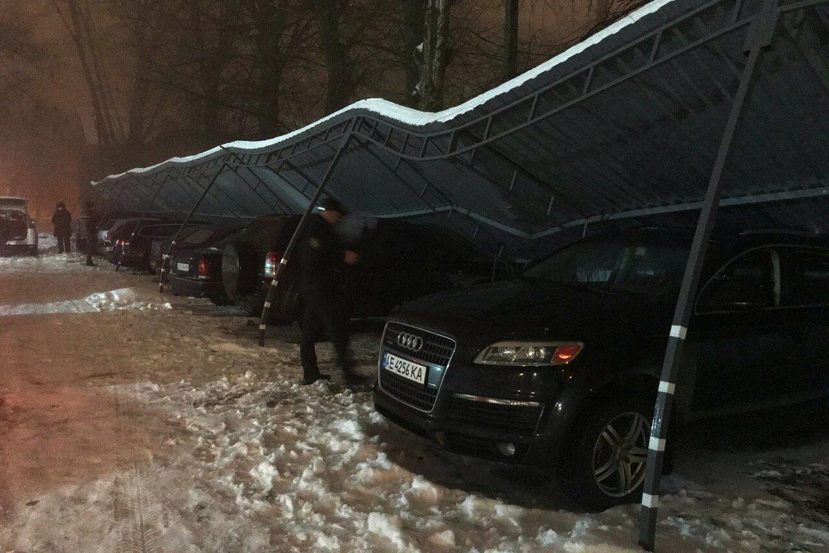 А вот на 12 квартале последствия обвала заснеженной крыше оказались более масштабными. Около 3:00 24 января там в районе дома № 103 на проспекте Богдана Хмельницкого обвалилась крыша платной парковки, которая была полностью заставлена автомобилями. Давшая слабину крыша упала прямиком на олставленные на ночлег автомобили.