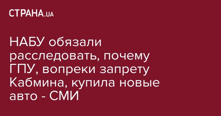 НАБУ обязали расследовать, почему ГПУ, вопреки запрету Кабмина, купила новые авто - СМИ
