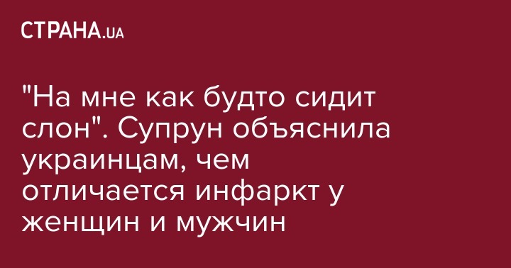 "На мне как будто сидит слон". Супрун объяснила украинцам, чем отличается инфаркт у женщин и мужчин