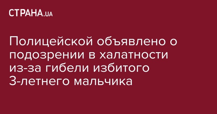Полицейской объявлено о подозрении в халатности из-за гибели избитого 3-летнего мальчика