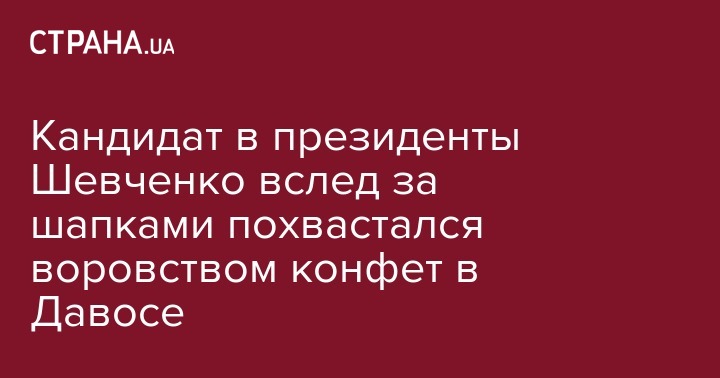 Кандидат в президенты Украины экс-министр экологии Игорь Шевченко, который только недавно поделился, как ему удалось набрать сразу несколько сувенирных бесплатных шапок на Всемирном экономическом форуме в швейцарском Давосе, снова похвастался сувенирами, которые у него получилось "украсть". Об этом он написал на своей странице в Facebook.