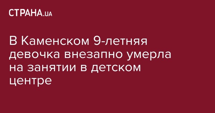 В одном из детских центров Днепропетровской области, в городе Каменское, во время занятий умерла 9-летняя девочка. Об этом сообщает пресс-служба Каменского отдела полиции области в Facebook.