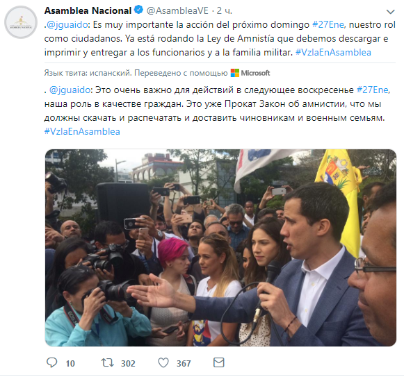 А затем, уже в Twitter самого Хуана Гуайдо появился и проект нового закона об амнистии.