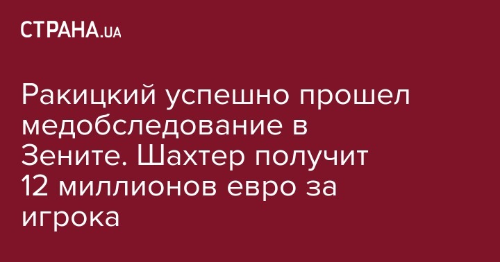Ракицкий успешно прошел медобследование в Зените. Шахтер получит 12 миллионов евро за игрока