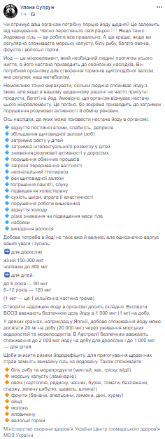 Ульяна Супрун указала необходимую суточную потребность в йоде: