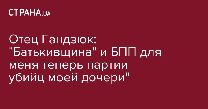 "Для меня теперь партия Батькивщина - это партия убийц моей дочери. Для меня теперь Блок Петра Порошенко - это партия убийц моей дочери", - заявил отец активистки Виктор Гандзюк.
