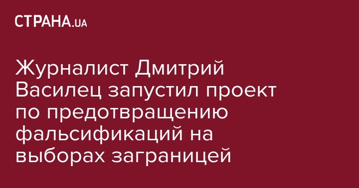 Журналист Дмитрий Василец создал общественный проект по противодействию фальсификациям на заграничных избирательных участках на будущих парламентских и президентских выборах в Украине.