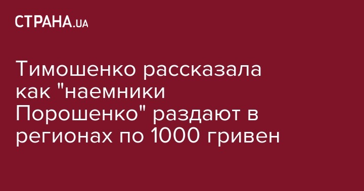 "Во всех областях, во всех районах сегодня разворачивается новая мегакоррупционная модель. Окружение, наемники Петра Порошенко сегодня по всей стране подписывают с людьми так называемые договора на агитацию и раздают людям по тысяче гривень", - заявила она журналистам в понедельник в Центральной избирательной комиссии Украины.