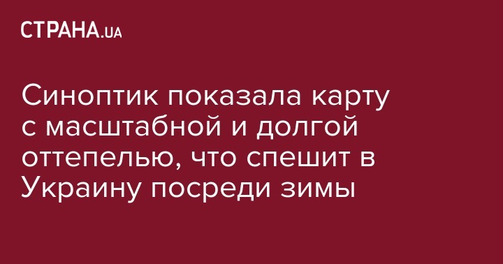 Синоптик показала карту с масштабной и долгой оттепелью, что спешит в Украину посреди зимы