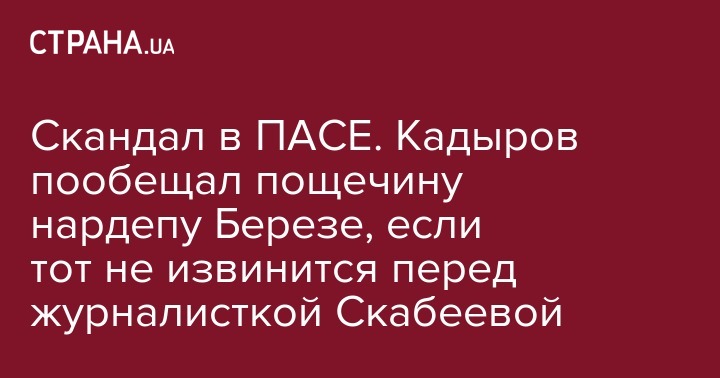 После скандала в кулуарах ПАСЕ, когда российскую журналистку Ольгу Скабееву толкнул нардеп Борислав Береза, в дело вмешался и глава Чечни Рамзан Кадыров, который публично потребовал от украинского политика извинений, пригрозив, в противном случае, "звонкой пощечиной".