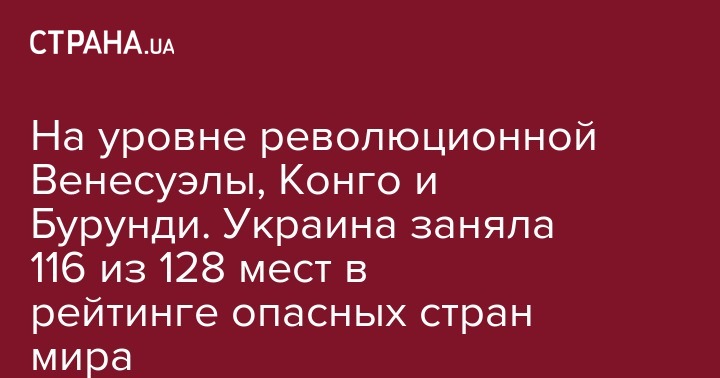 На уровне революционной Венесуэлы, Конго и Бурунди. Украина заняла 116 из 128 мест в рейтинге опасных стран мира