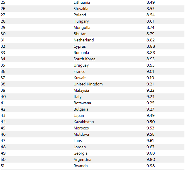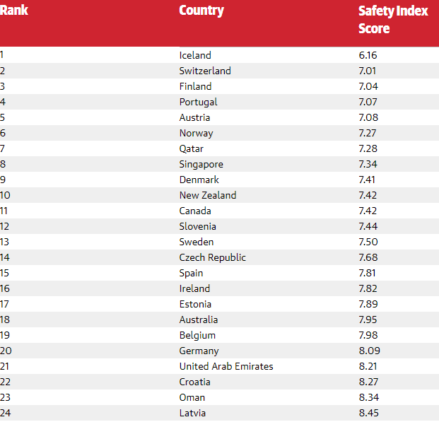 К примеру, США оказались ровно посередине списка – на 65 месте. Из-за угрозы разгула стихии и насилия. Лучше всего с безопасностью дела обстоят в Европе. Первая шестерка состоит из Исландии, Швейцарии, Финляндии, Португалии, Австрии и Норвегии. В десятке также Катар, Сингапур, Канада и Дания. Россия также оказалась на самом дне рейтинга - ей социологи присудили 108 место.