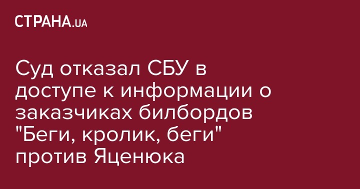 Суд решил не предоставлять СБУ доступ к документам о заказчике наружной рекламы, направленной против экс-премьер-министра Украины Арсения Яценюка, так как счел, что следствие не доказало существование обоснованного подозрения о совершении уголовного преступления. Об этом со ссылкой на судебные материалы пишут "Украинские Новости"