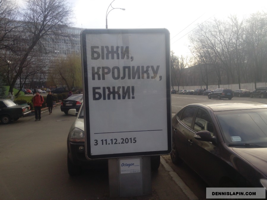 СБУ расследовала дело с мая 2018 года. Следователи установили, что с 27 февраля 2014 по 14 апреля 2016 года в Киеве и Киевской области были размещены сити-лайты с лозунгами: "Беги, кролик, беги с 11.12.2015", "Сеня, давай, до свидания с 11.12.2015", "Последнее слово кролика 16 февраля", "Белый кролик побежал". Рекламные площади принадлежали ООО "Октагон-Аутдор".