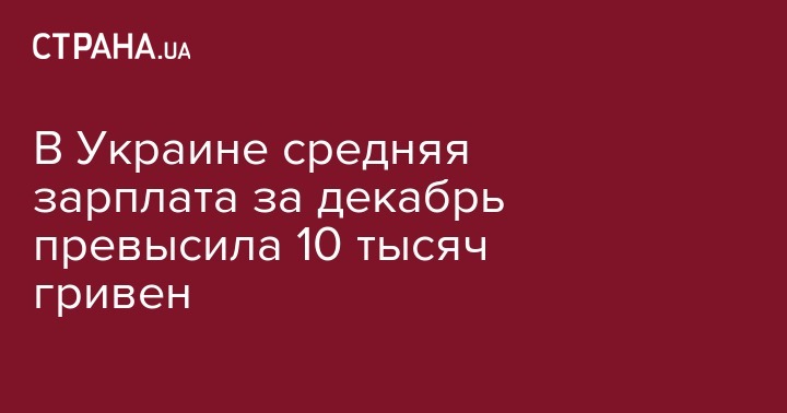 "Средняя заработная плата в Украине в декабре составила 10573 грн, что в 2,8 раза больше показателя минимальной зарплаты. Как свидетельствуют данные Государственной службы статистики Украины, рост реальной зарплаты за декабрь до ноября составил 14,5%. Рост по году – 9,7%", - говорится в сообщении.