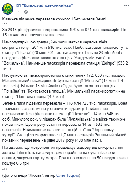 К слову, в 2017 году в лидерах на зеленой ветке была "Лукьяновская". В 2018 году она перевезла 14 млн 533 тысяч пассажиров.