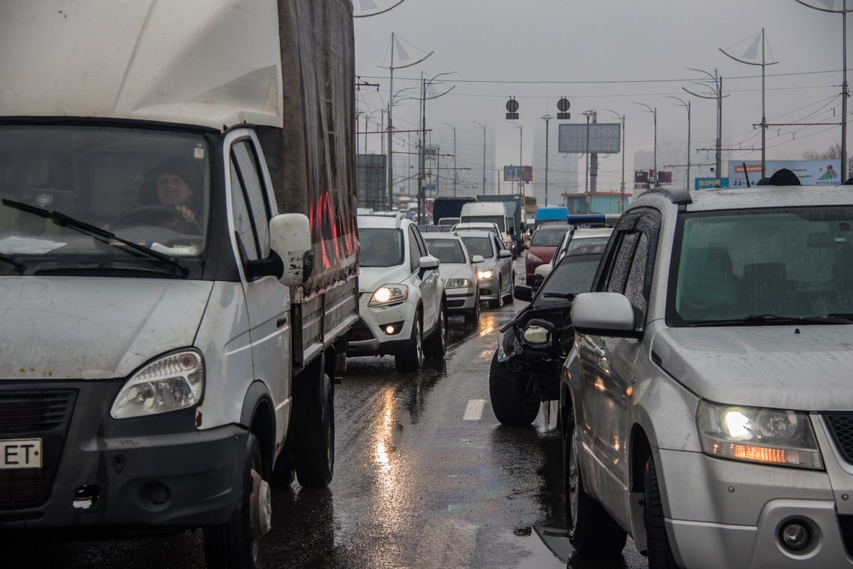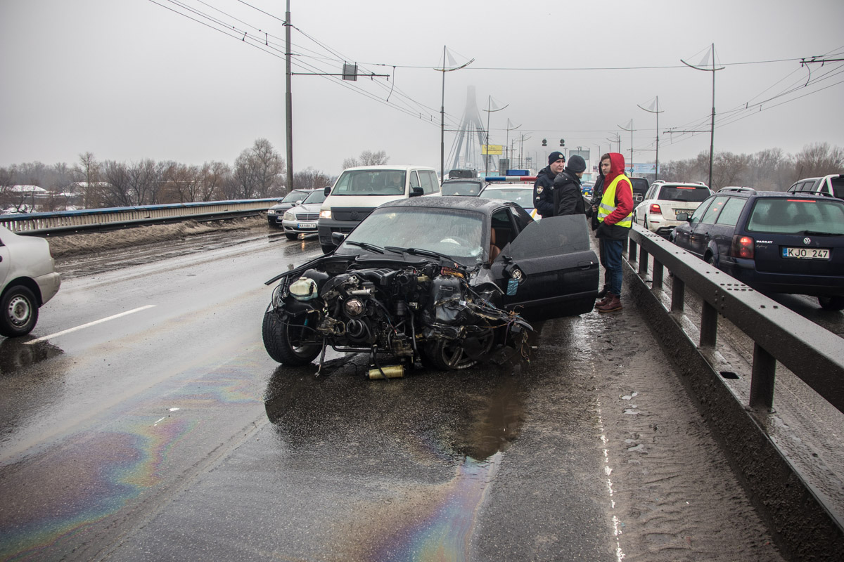 На Северном мосту Киева легковушка на скорости влетела в отбойник и спровоцировала масштабные пробки