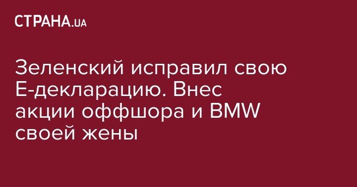 Зеленский исправил свою Е-декларацию. Внес акции оффшора и BMW своей жены