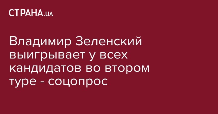 Владимир Зеленский выигрывает у всех основных кандидатов во втором туре президентских выборов, а Юлия Тимошенко - у Петра Порошенко и сопредседателя объединения "Оппозиционная платформа - За життя" Юрия Бойко.