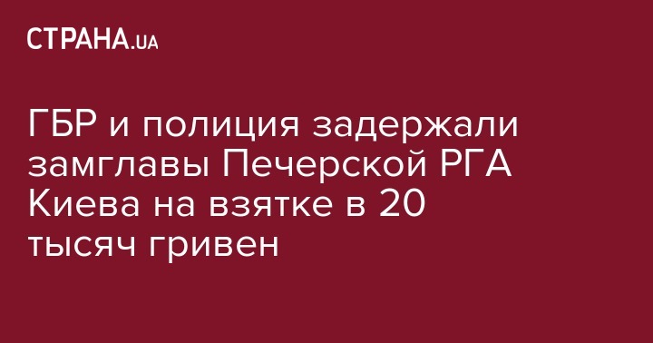 Следователи Государственного бюро расследований (ГБР) совместно с сотрудниками полиции задержали заместителя главы Печерской районной государственной администрации г.Киева за вымогательство и получение взятки в 20 тыс. грн.