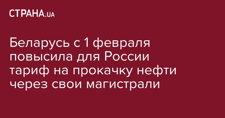 Беларусь с 1 февраля повысила для России тариф на прокачку нефти через свои магистрали