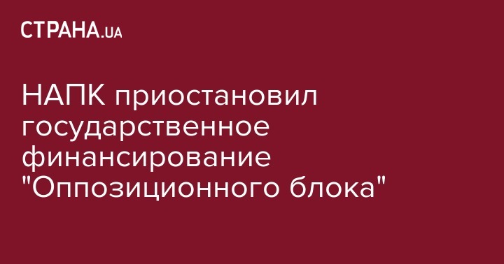 Национальное агентство по предупреждению коррупции остановило перечисление государственного финансирования уставной деятельности "Оппозиционного блока" "до выяснения обстоятельств". Об этом сообщает пресс-служба НАПК.