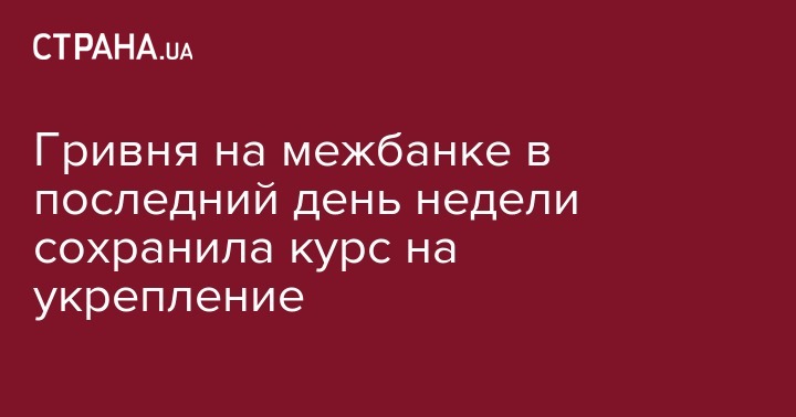 Курс гривни на межбанковском валютном рынке в пятницу укрепился до 27,5 грн/$1 с 27,625 грн/$1 в предыдущий рабочий день, сообщили агентству "Интерфакс-Украина" дилеры коммерческих банков.