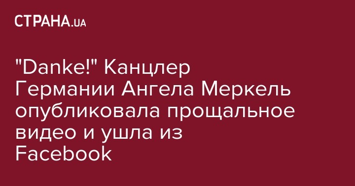 "Danke!" Канцлер Германии Ангела Меркель опубликовала прощальное видео и ушла из Facebook
