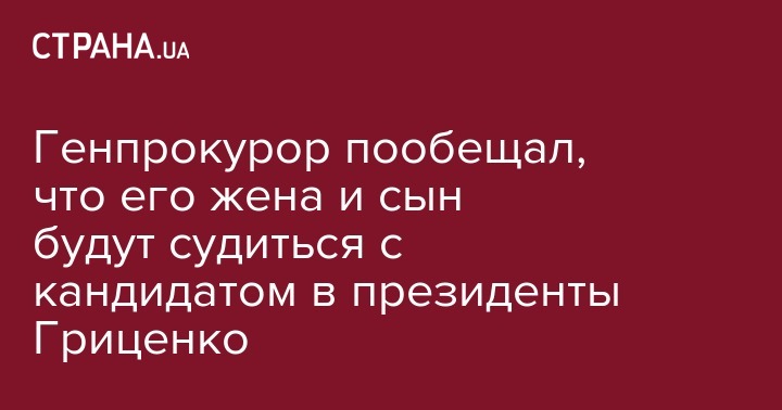 Генпрокурор пообещал, что его жена и сын будут судиться с кандидатом в президенты Гриценко