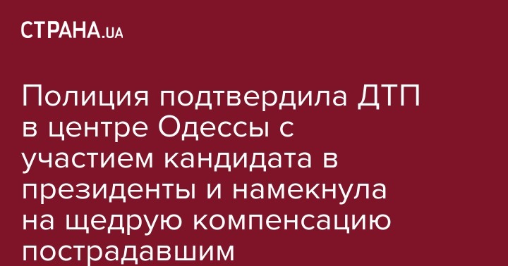 Полиция подтвердила ДТП в центре Одессы с участием кандидата в президенты и намекнула на щедрую компенсацию пострадавшим
