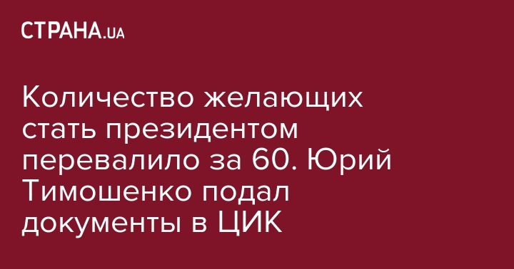 Количество желающих стать президентом перевалило за 60. Юрий Тимошенко подал документы в ЦИК