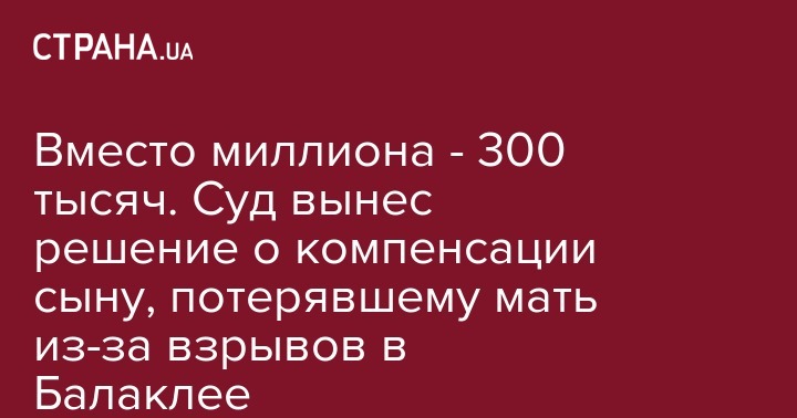 Киевский райсуд Харькова частично удовлетворил иск о возмещении морального ущерба Александру Полтавцу - сыну Елены Полтавец, погибшей в результате взрывов на территории арсенала № 65 в Балаклее. Об этом сообщает "Интерфакс-Украина"