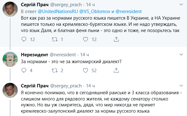 "Вот как раз за нормами русского языка пишется в Украине, а НА Украине пишется только на кремлевско-бурятском языке", - не утихают споры в соцсети. Впрочем, в ветке быстро забыли про "на Украине"/"в Украине" и начали обсуждать "за нормами"/"по нормам".